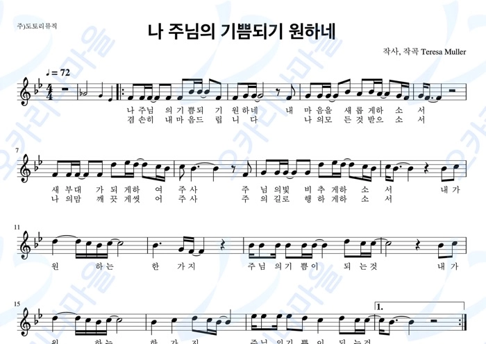 - 악보는 A4용지 세로 비율에 최적화된 PDF, 반주파일은 mp3 포맷이며, mp3파일의 비트전송률은 320kb/s입니다.