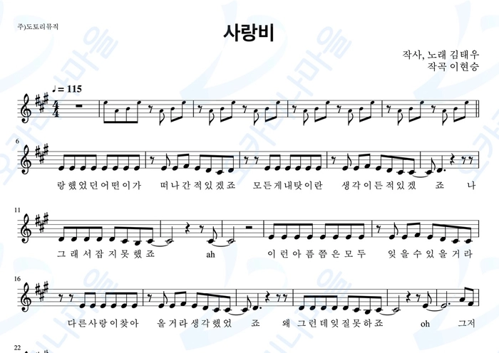 - 거의 모든 악보는 연주 편의를 위해 2페이지를 넘지 않게 디자인되었습니다.